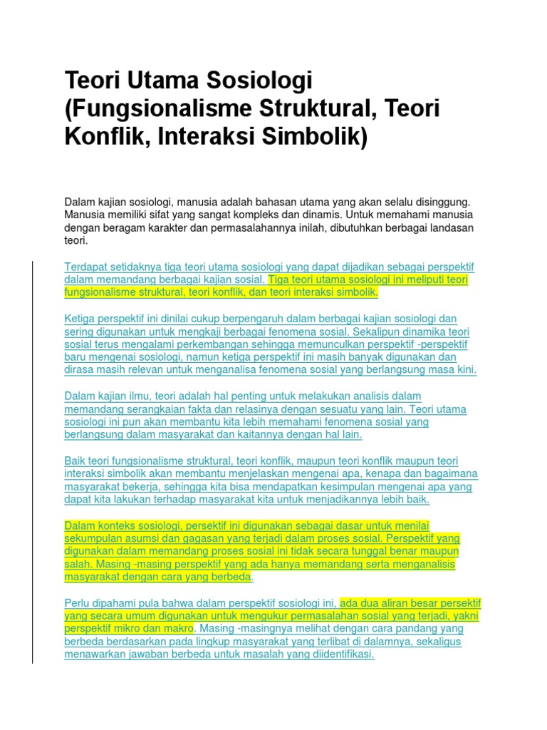 Sosiologi mempunyai tiga teori utama iaitu Teori Interaksionisme Teori Fungsionalisme dan Teori Konflik. Tokoh-tokoh perspektif interaksi simbolik diantaranya adalah George Simmel George Herbert Mead Erving Goffman dan Charles Cooley. Contoh Ciri Sosiologi Bersifat Non Etis.